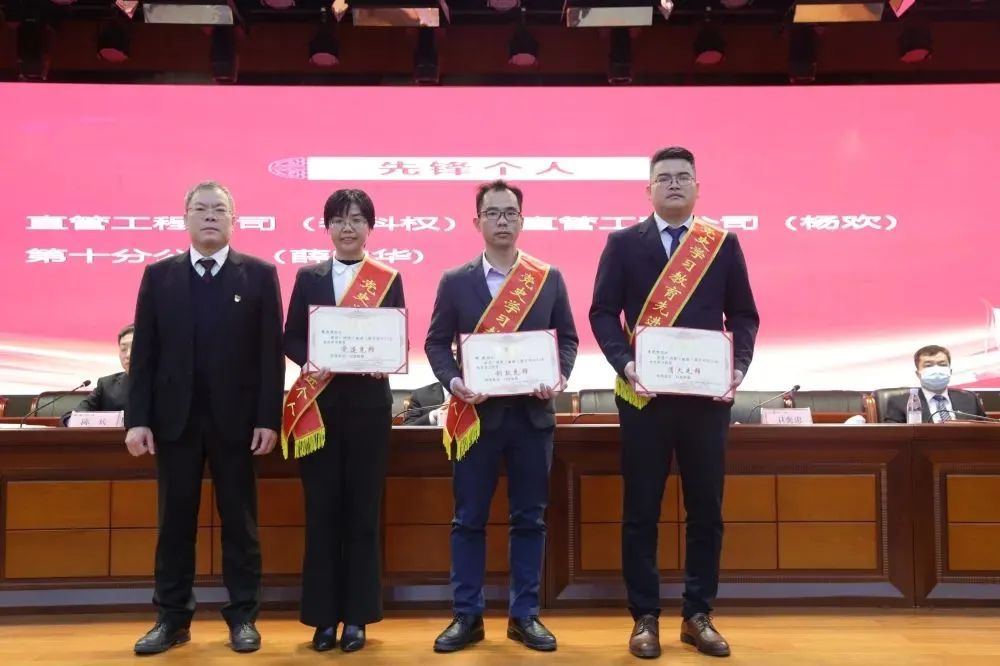 薛向華(左二)上臺領取“2021年公司黨建先鋒”榮譽證書